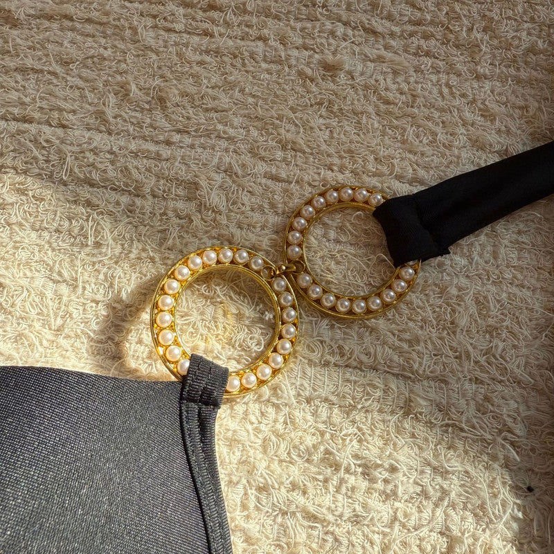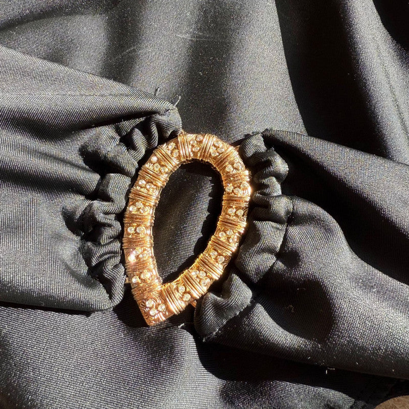 Black Solid Halter One Piece Swimsuit