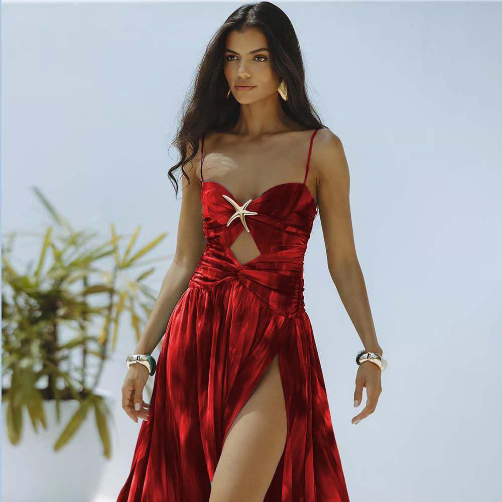 Color Fade Shoulder Strap One Piece Swimsuit with Cover Up Red