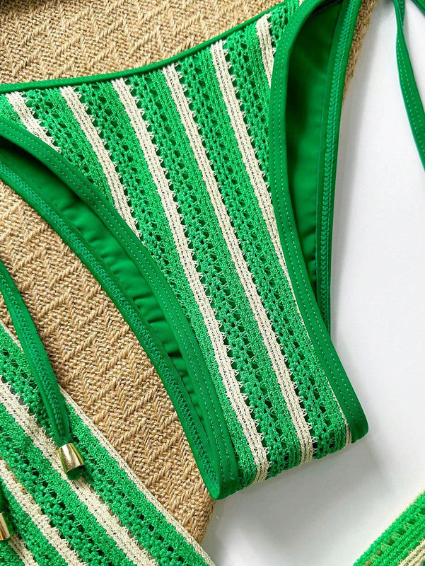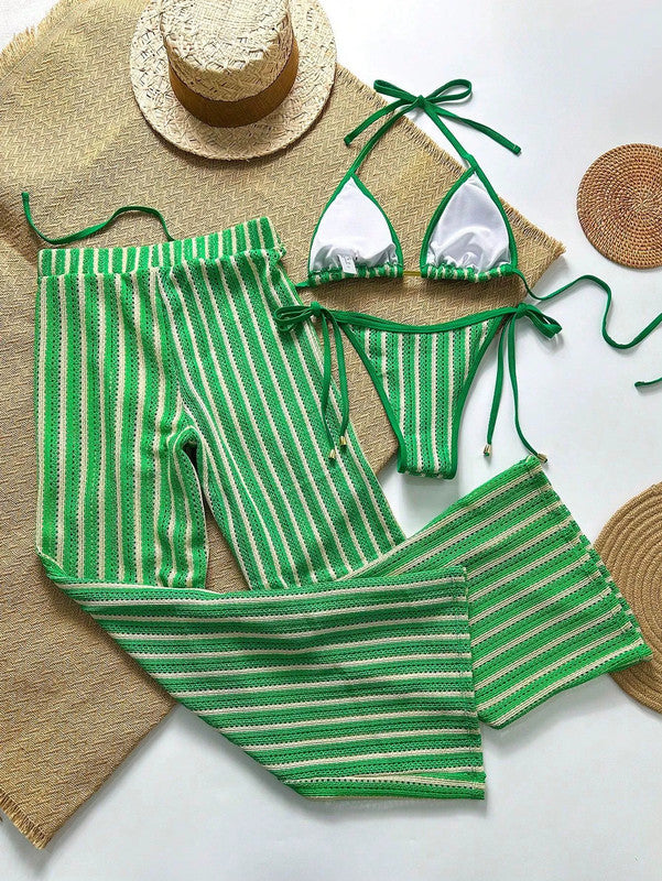 Product Description: Print: Stripes Neck: Halter Neck Number of Pieces: 3 Piece Set Care Instructions: Machine wash, do not dry clean