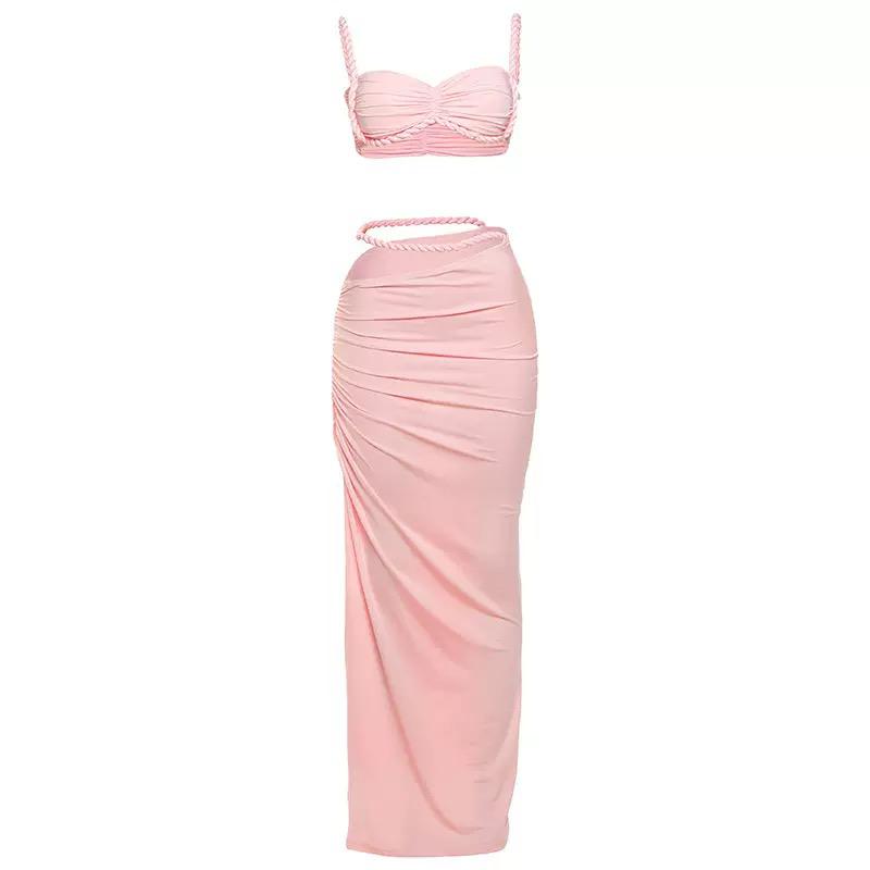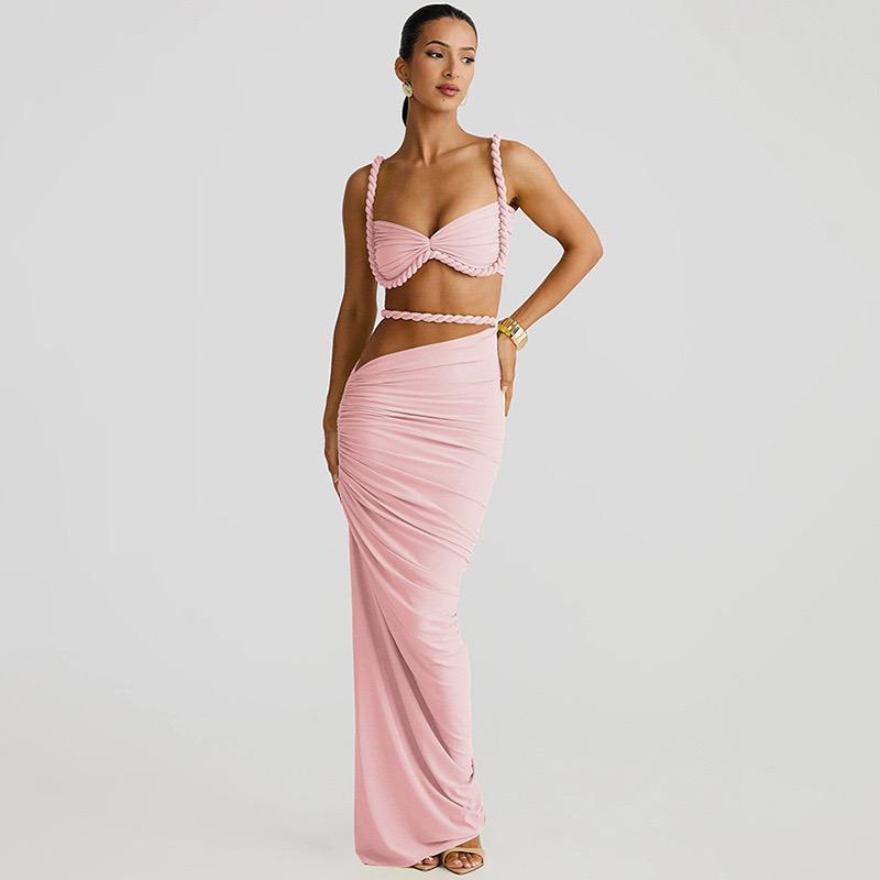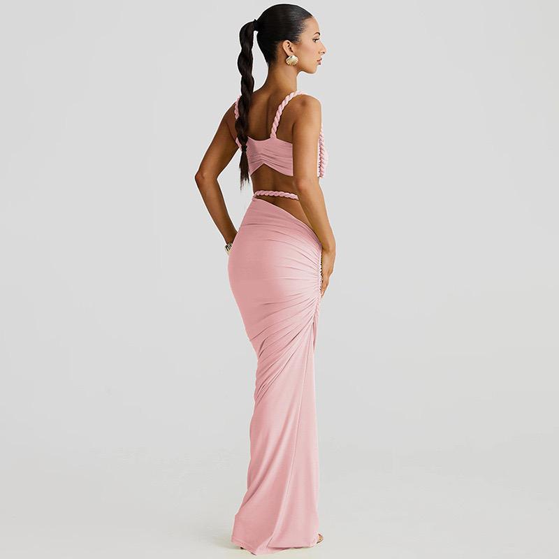 Light Pink Solid Bikini Set Maxi Cover-Up without Pad