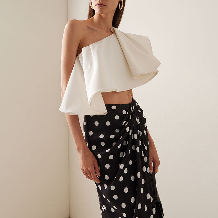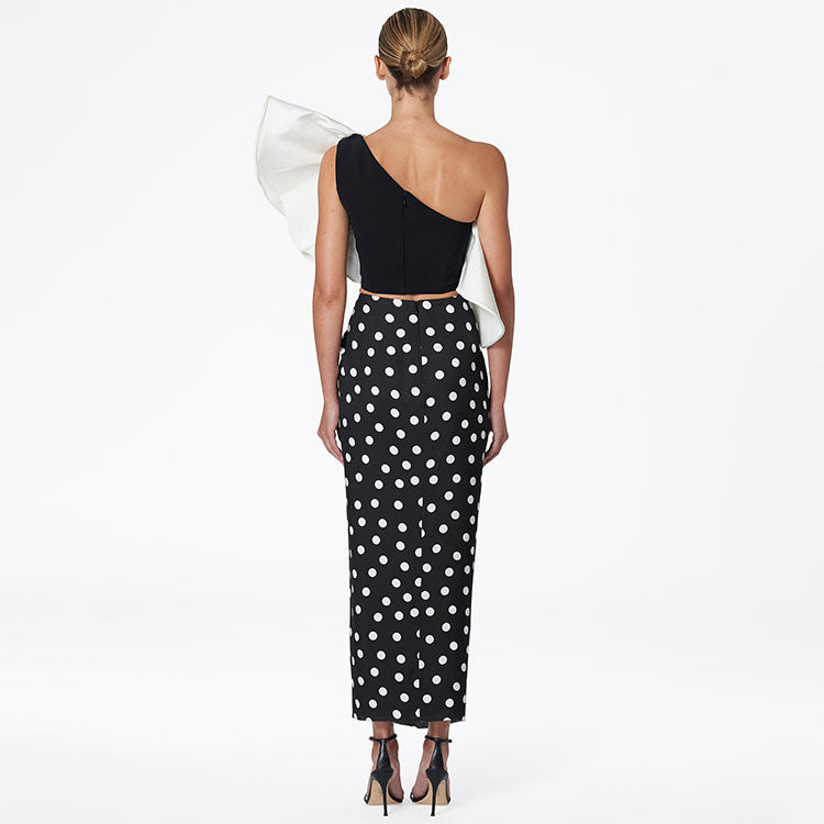Product Description: Print : Polka Dots Neck: One Shoulder Number of Pieces: 3 Piece Set Care Instructions: Machine wash, do not dry clean