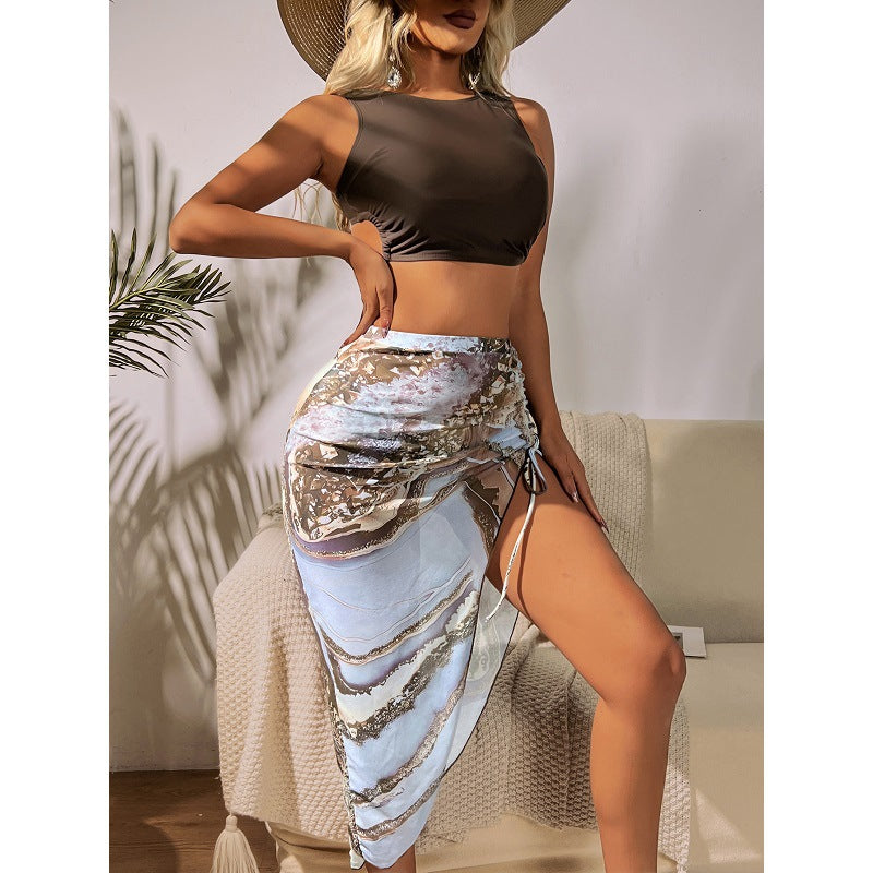 Multicolor Abstract Crop Top Bikini Set With Sarong